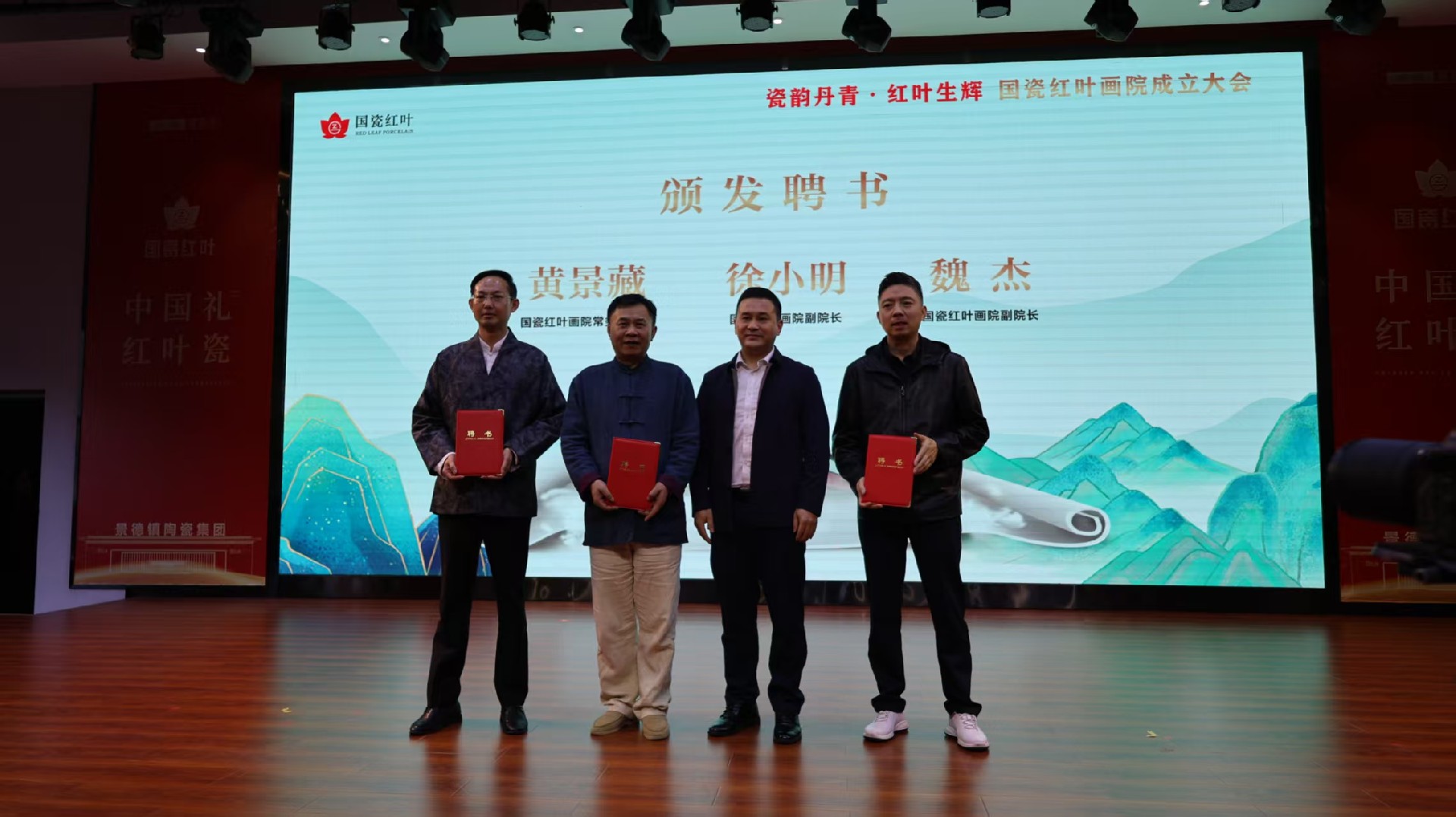瓷都盛會話傳承,紅葉溢彩繪新篇。11月9日上午,景德鎮(zhèn)陶瓷集團旗下國瓷紅葉畫院成立大會在紅葉陶瓷國瓷館隆重舉行。江西省輕工業(yè)聯(lián)合會理事長鄭正春,景德鎮(zhèn)市政府黨組成員、昌南新區(qū)黨工委書記余立新,景德鎮(zhèn)陶瓷研究院黨組書記、院長吳浪,江西陶瓷工藝美院黨委委員、副院長朱輝球,江西省輕工業(yè)聯(lián)合會秘書長崔軍,景德鎮(zhèn)陶瓷協(xié)會秘書長陳華清,中國工藝美術(shù)大師劉偉,中國工藝美術(shù)大師黃景藏,景德鎮(zhèn)陶瓷大學設(shè)計藝術(shù)學院院長余劍峰,景德鎮(zhèn)學院陶瓷美術(shù)與設(shè)計藝術(shù)學院黨委書記陳后輝,市工信局副局長朱成,市昌南新區(qū)黨工委委員、管委會副主任張英,景德鎮(zhèn)新聞傳媒集團副總經(jīng)理丁添,北京天壇文化產(chǎn)業(yè)有限公司CEO王莎莎,嗶哩嗶哩Vsinger業(yè)務部—市場總監(jiān)劉冰潔及景德鎮(zhèn)陶瓷集團領(lǐng)導班子等領(lǐng)導和嘉賓出席大會。